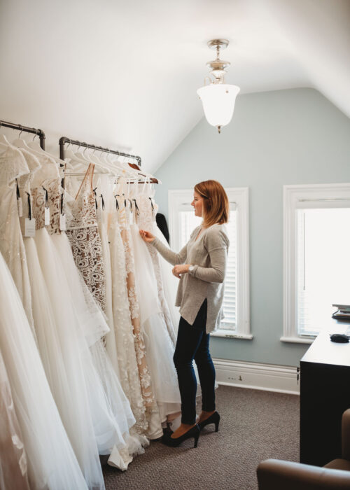Krystal is the owner/operator of Ceremony Bridal Studio. She entered the world of bridal back in 2012 when she opened her first boutique in Newmarket, Ontario. Soon after moving to the Barrie area, she pivoted into the wholesale side and worked as the Canadian Sales Manager for an international bridal designer. In 2018, when the travel became a little too much, she decided to open Ceremony Bridal in downtown Barrie. It took off, and here we are! Krystal works mostly on the back end of the business now and relies on her incredible stylists to help you find your dream dress. If you email Ceremony though, you will most likely be speaking with her! Krystal’s favourite designer at Ceremony is Willowby by Watters.