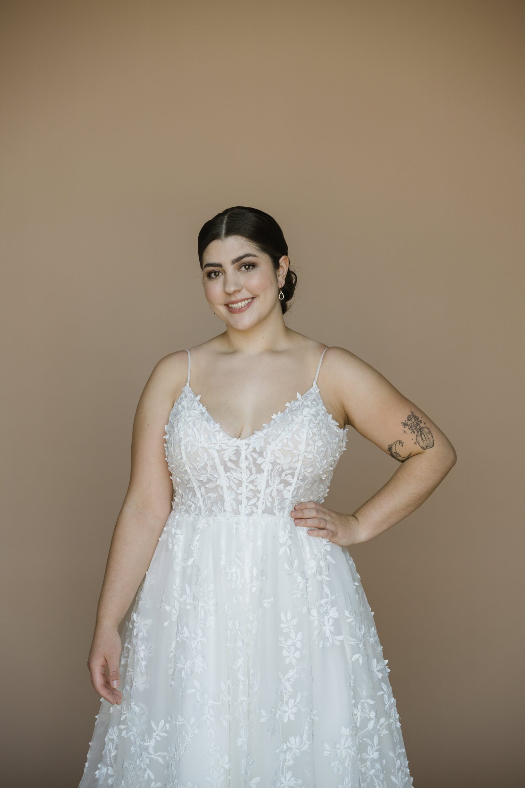 Shopping for your wedding gown based on samples alone is not always easy! We are slowly trying to fix that for our brides by bringing in size-inclusive styles that do not compromise on quality or style! Move over tacky rouching and taffeta!! You should not have to settle for less than your dream bridal gown due to a lack of sizing selection, and we get that!