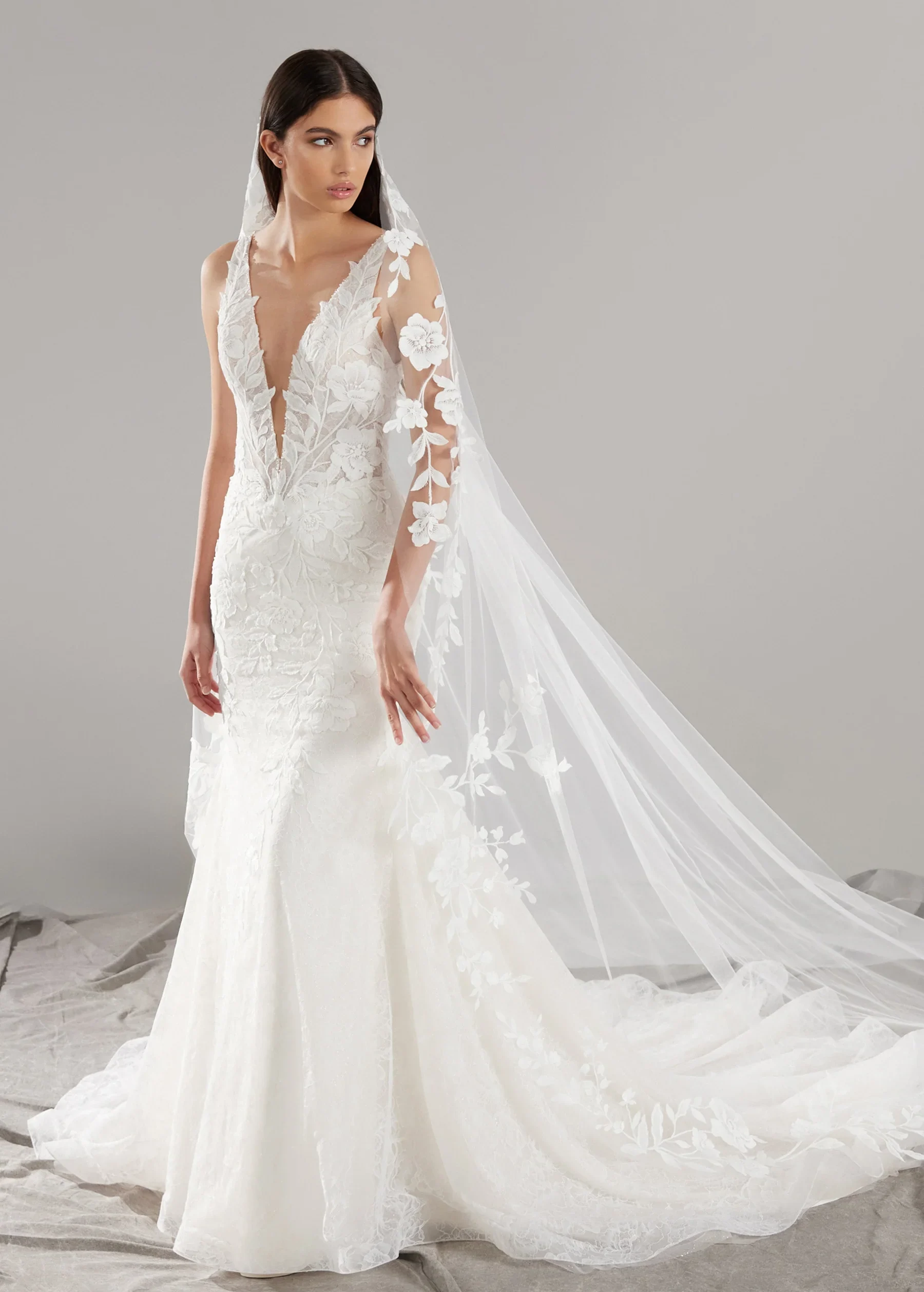 Pronovias is a leading global powerhouse in the world of wedding dresses. Sexy, sleek and sophisticated is the best way to describe this collection. Spanish traditional design with a modern flair and the perfect fit, that’s what Pronovias Barcelona offers. Price range $1,800 – $3,300