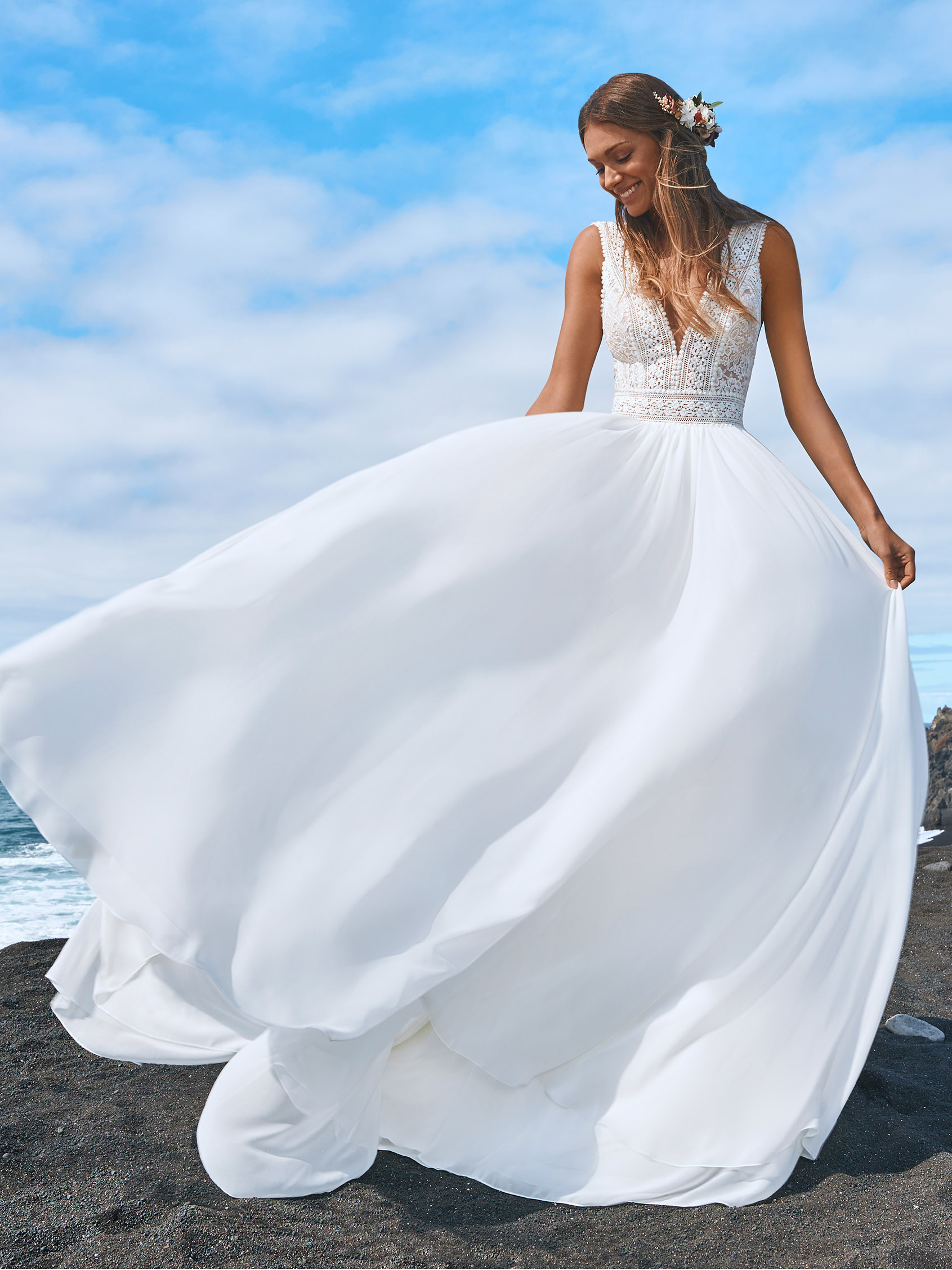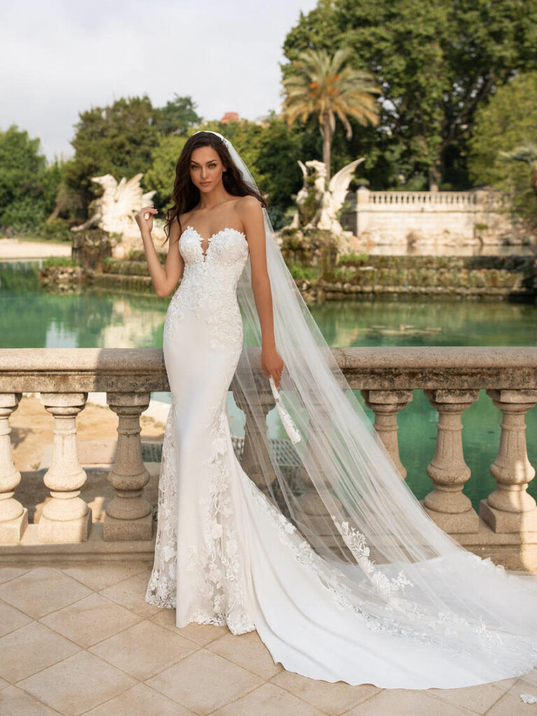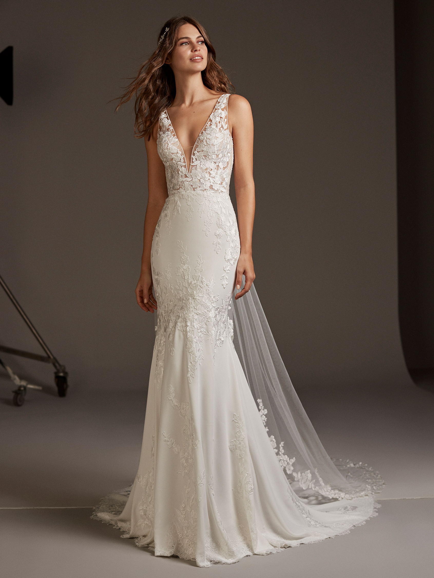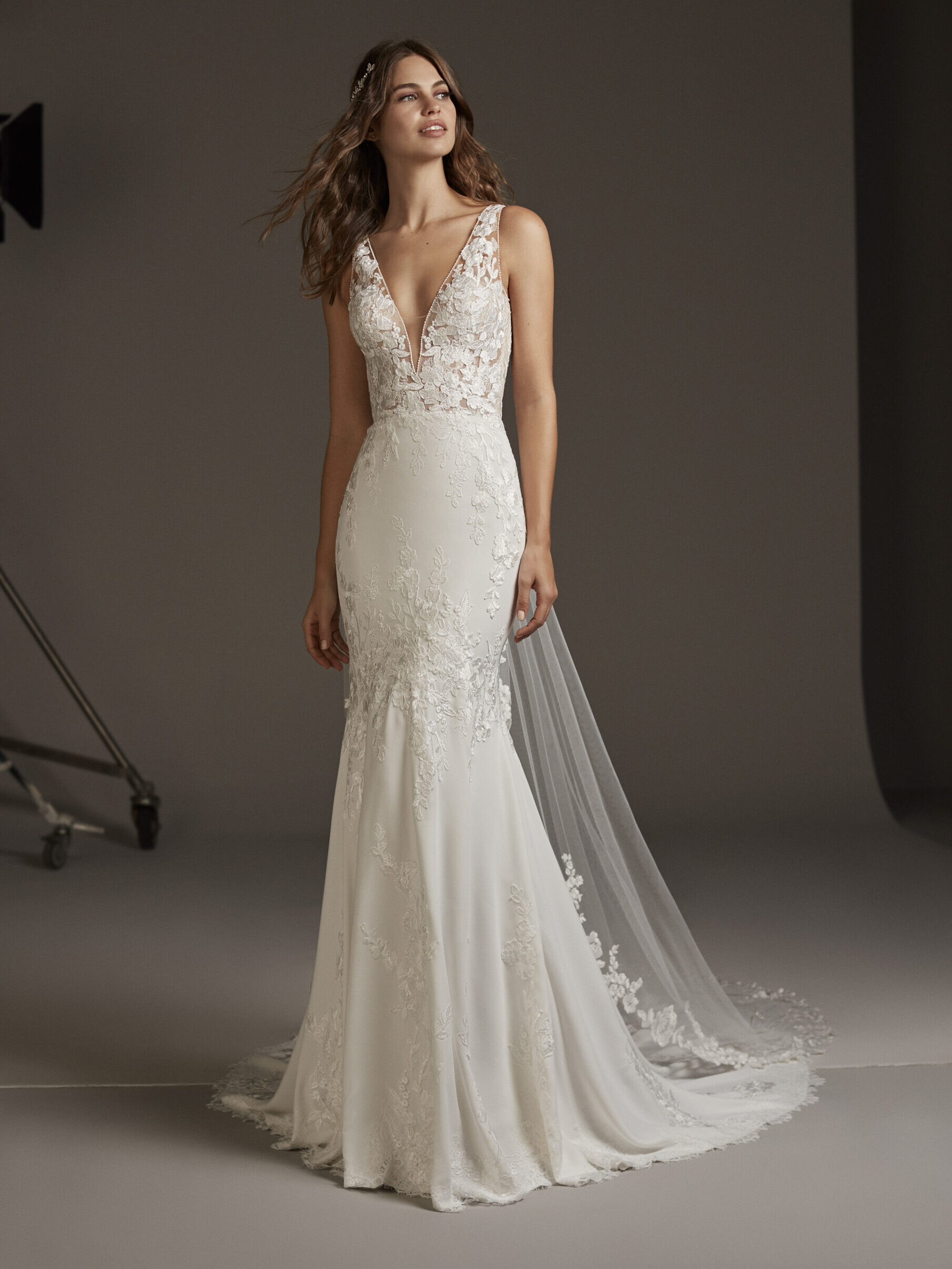 Pronovias is a leading global powerhouse in the world of wedding dresses. Sexy, sleek and sophisticated is the best way to describe this collection. Spanish traditional design with a modern flair and the perfect fit, that’s what Pronovias Barcelona offers. Price range $1,800 – $3,300