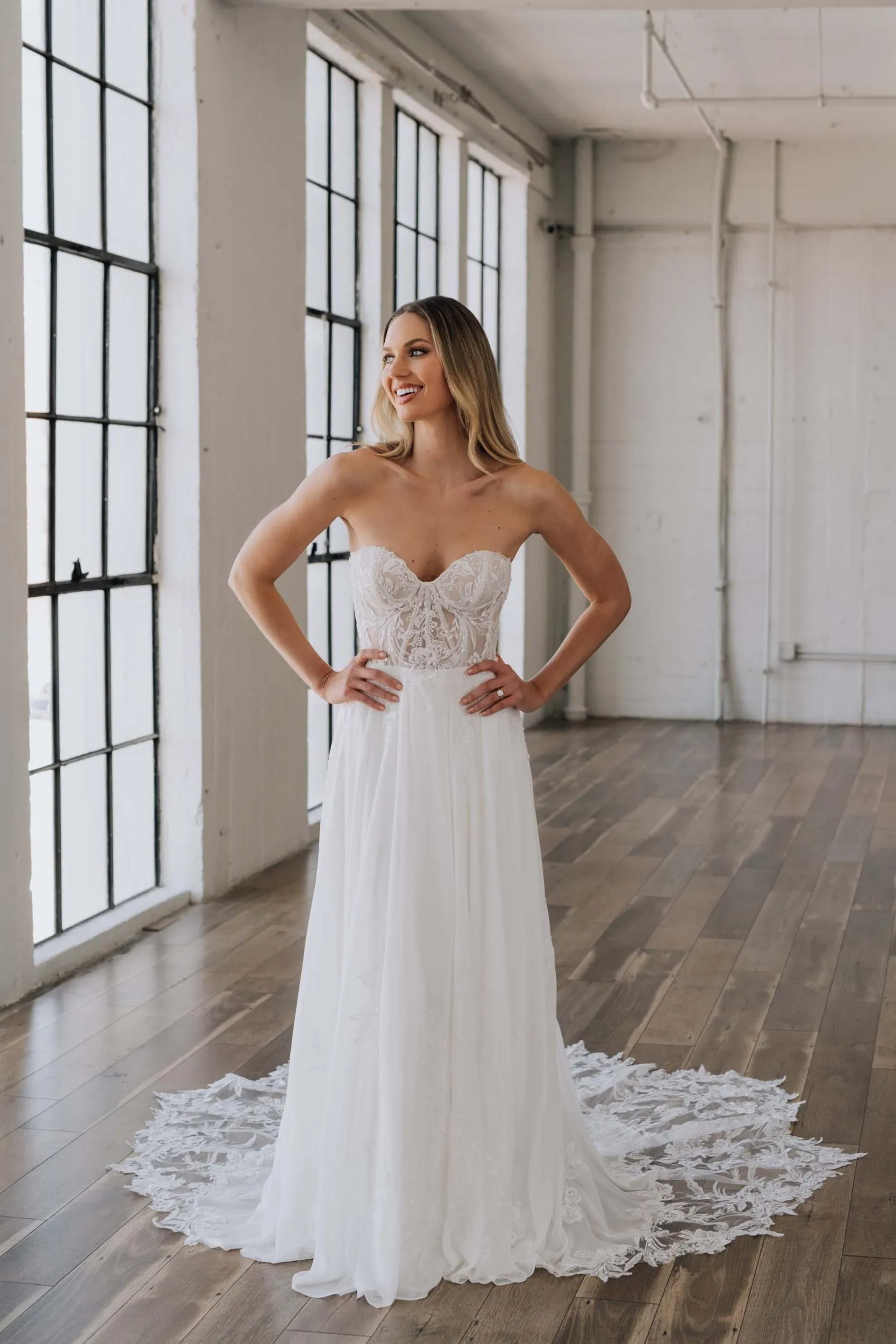 Serene by Madi Lane seeks to redefine bridal fashion, catering to the bride who prioritizes their own essence over extravagant labels. The collection is thoughtfully crafted to ensure we stand out as a brand that speaks directly to the hearts and minds of brides seeking both superior craftsmanship and affordability.. Price range $1,700 – $2,500