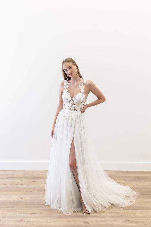 Willowby by Watters is a bridal gown collection for the truly unique bride. Quality fabrics and incredible silhouettes paired with a boho vibe make Willowby pieces like no other. 30 years ago, Vatana Watters made a few wedding dresses for friends and family, and found herself in demand. By the late 1980s, Watters had become a leading brand in bridal. Today it is a multi-tiered, global enterprise serving the needs of diverse brides and bridal parties worldwide. Price range $2,000 – $3,000